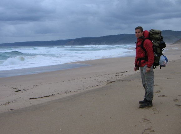 Am Johanna Beach wo uns kurz vor unserem Campingplatz eine stürmische Welle erwischt und wir klitschnasse