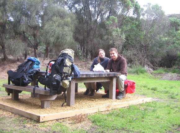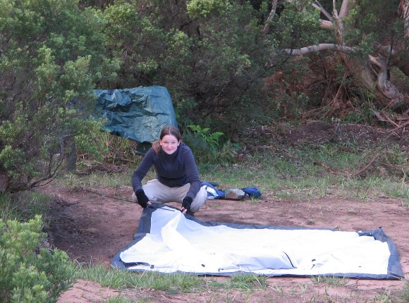 Lagerfeuer am Campingplatz Johanna Beach. Wir mussten nach dem zum Glück einzigen, aber sehr