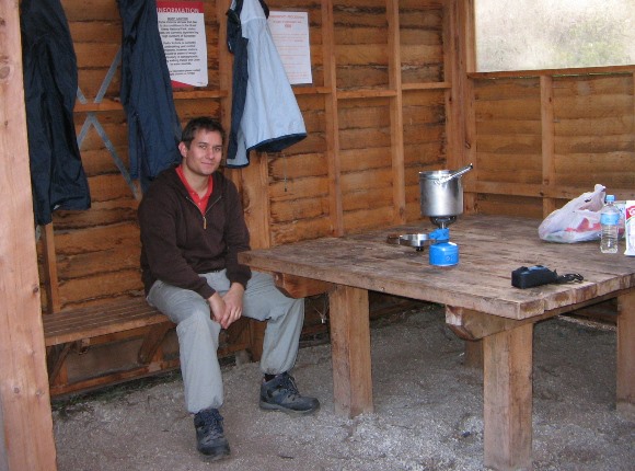 Die "Sonnenterrasse" vor dem Klohäuschen... Hier haben wir uns gefragt warum man nicht die Aufenthaltshütte in die